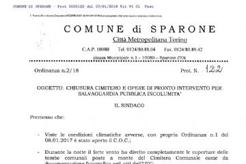 CHIUSURA CIMITERO Opere di Pronto Intervento per salvaguardia pubblica incolumita'