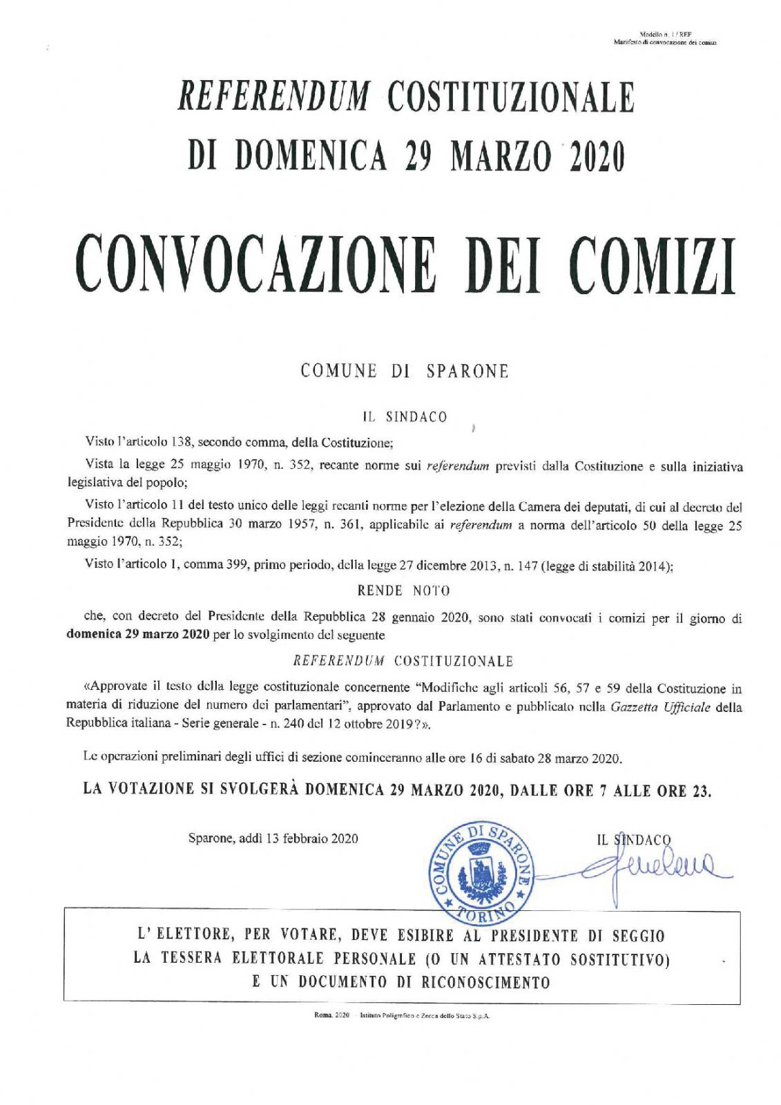 DOMENICA 29 MARZO 2020 - REFERENDUM COSTITUZIONALE - CIRCOLARI