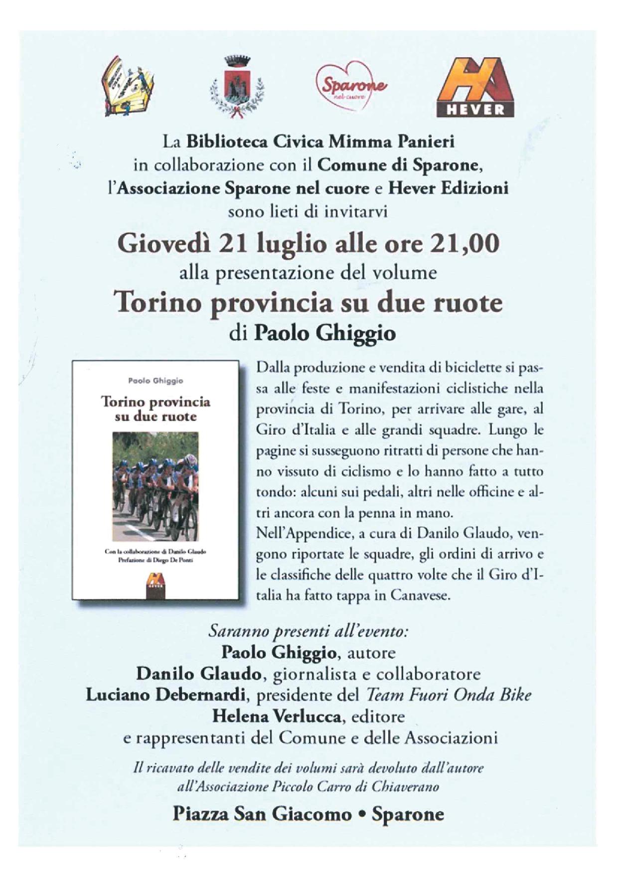 Giovedì 21 luglio alle ore 21.00 presentazione del volume in Piazza San Giacomo - Sparone