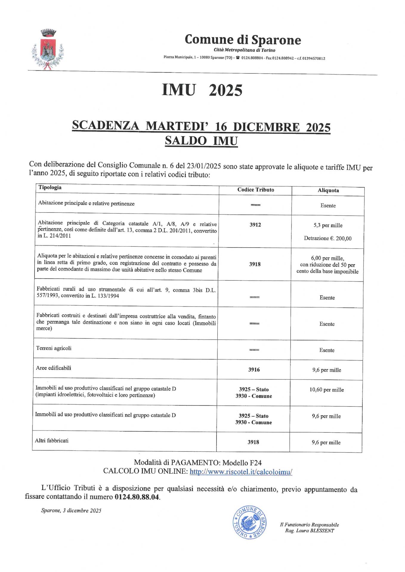 Avviso Saldo IMU Anno 2025