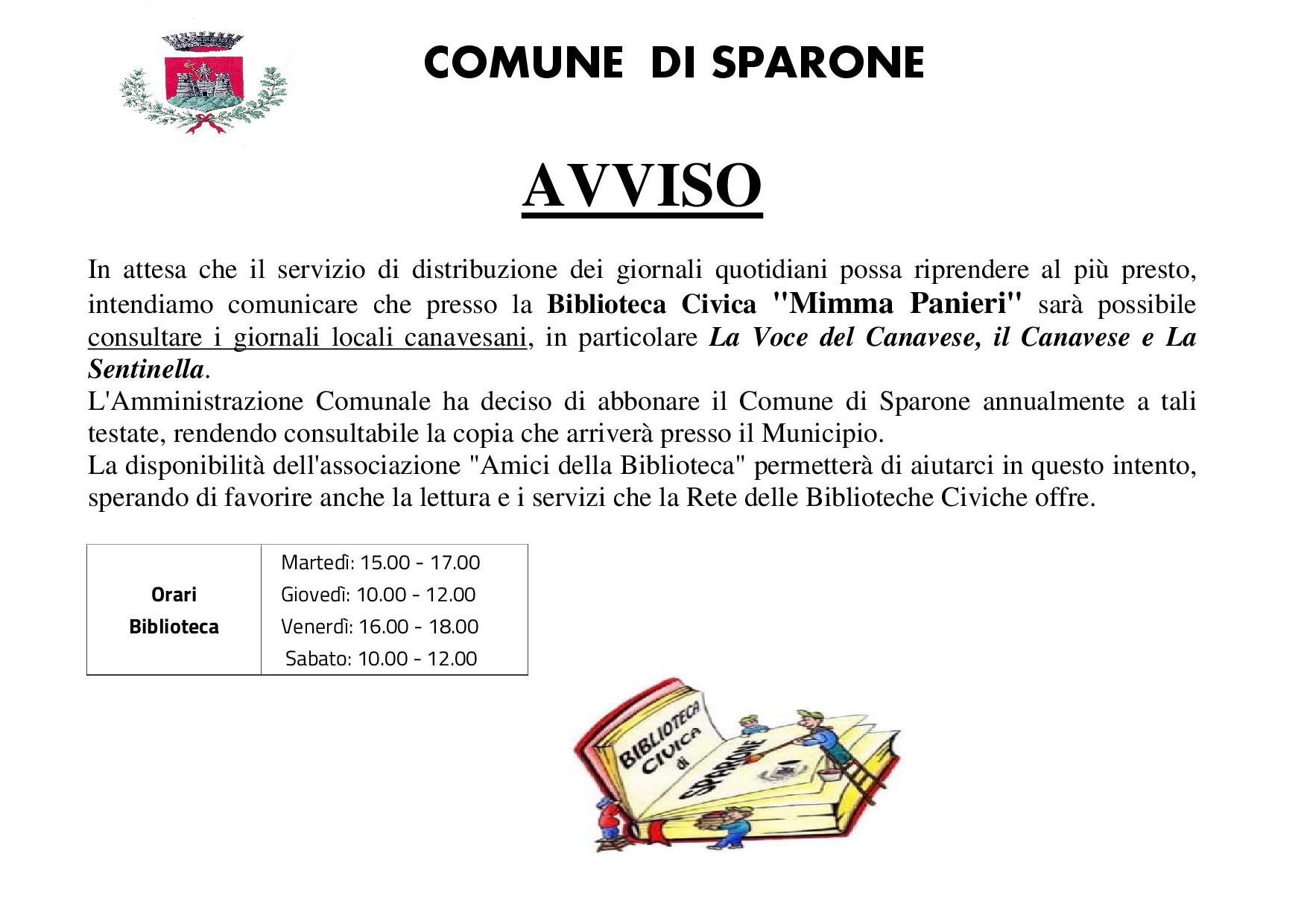 L'Amministrazione Comunale ha deciso di abbonare il Comune di Sparone annualmente a tali testate, rendendo consultabile la copia che arriverà presso il Municipio.