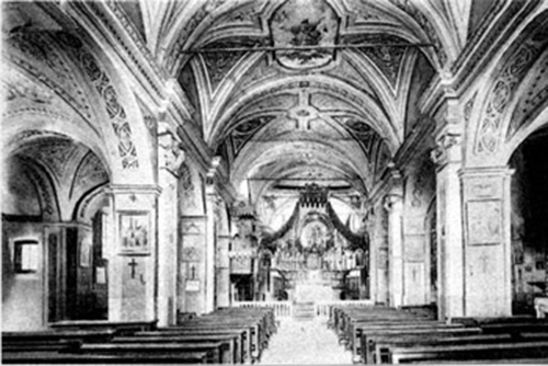 Nel '600 non esisteva soffittatura, come annota Mons. Asinari nel 1647... "la chiesa non ha una volta nel sottotetto, vi sono solo tre archi di sostegno...". La volta in muratura, intonacata ed imbiancata, fu costruita molto probabilmente nei primi decenni del '700: la cita per la prima volta Mons. De Nicola nel 1729... "la pioggia filtra dalla volta a causa di qualche falda sul tetto...". Mons. De Villa nel 1750 appunta: "l'edificio...ha volta e pareti imbiancate..." ed anche ne trattano i visitatori successivi. La volta venne poi demolita verso il 1960 durante i lavori di rifacimento del tetto ed il soffitto rimase con la travatura a vista, come si presenta tutt'oggi.