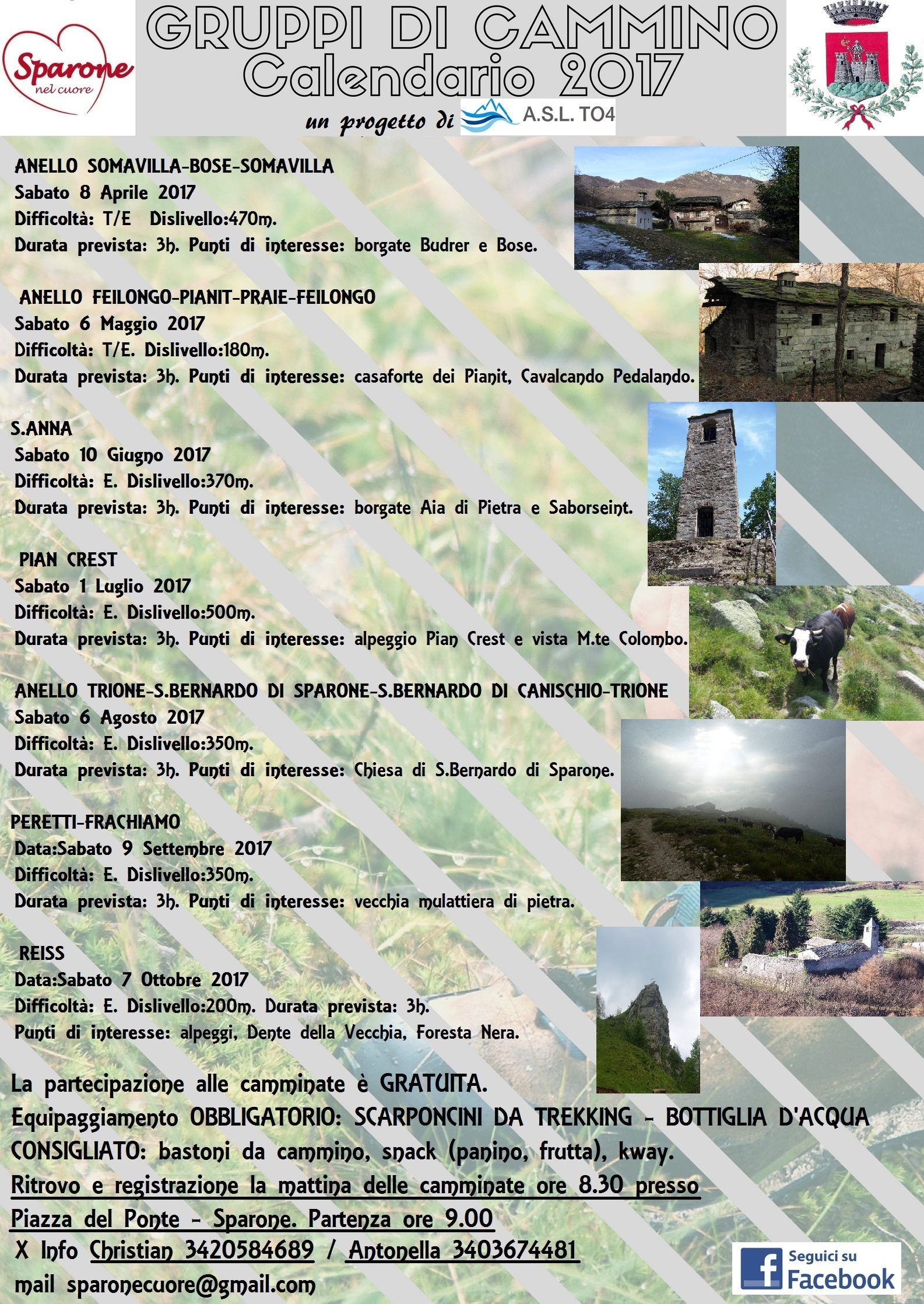 Al via sabato 8 aprile il progetto "Gruppi di Cammino" promosso in sinergia con l'ASL TO4 e realizzato con la collaborazione dei walking leader dell'associazione "Sparone nel Cuore". La partecipazione è libera e gratuita, richiesto il consenso informato. Per info e adesioni contattare i riferimenti indicati in calce alla locandina.