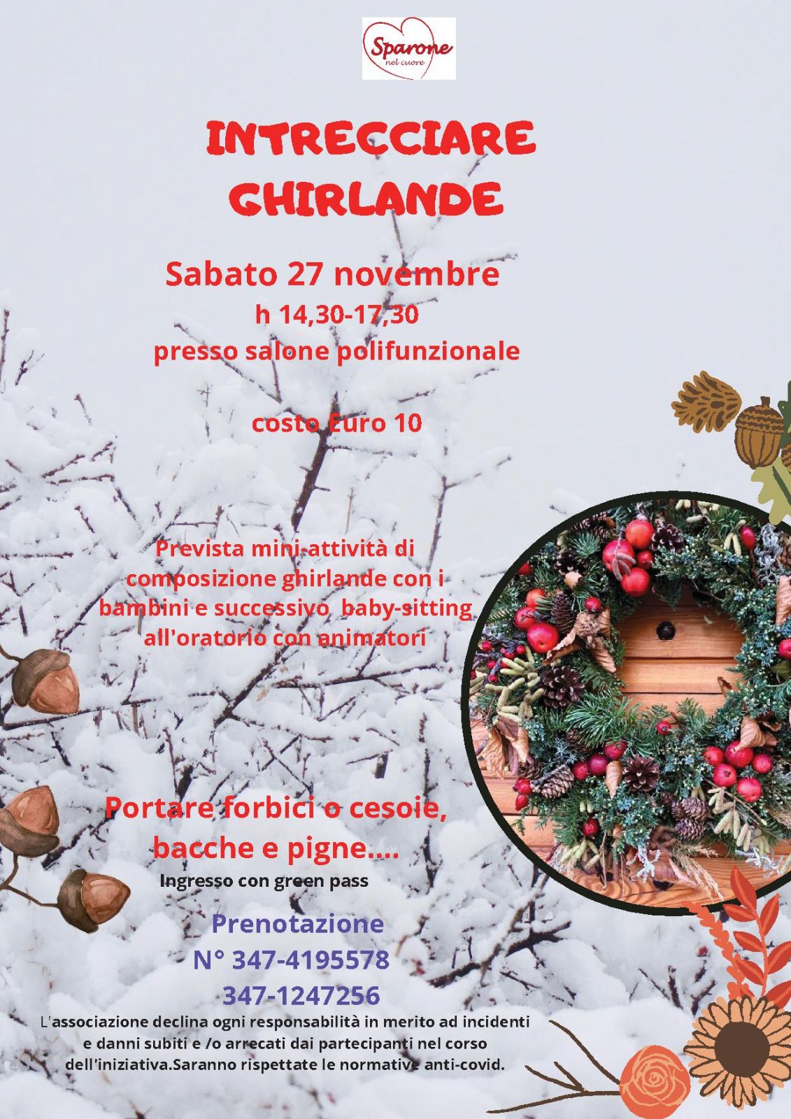 Prevista mini-attività di composizione di ghirlande con i bambini e successivo baby-sitting all'oratorio con animatori.