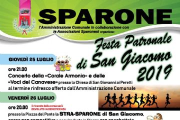 L'Amministrazione Comunale di Sparone in collaborazione con le Associazioni Sparonesi organizza la Festa Patronale di San Giacomo 2019
