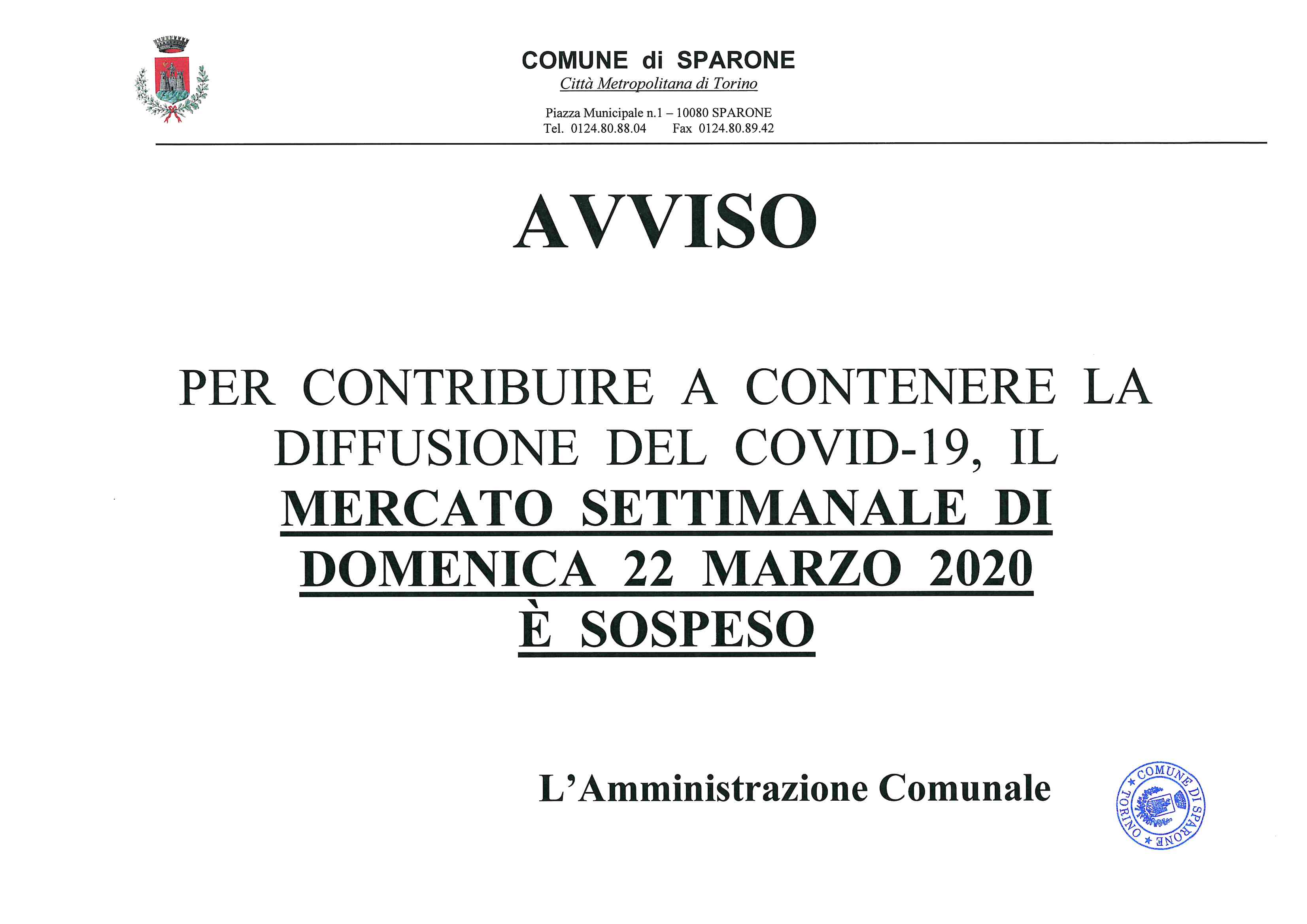 Sospensione mercato settimanale di domenica 22 marzo 2020