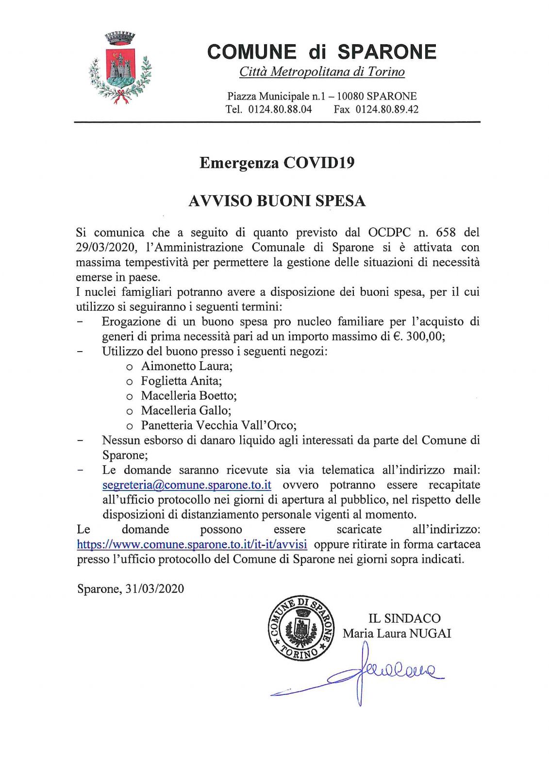 PROGETTO DI EROGAZIONE BUONI SPESA DI SOSTEGNO ECONOMICO PER EMERGENZA EPIDEMIOLOGICA COVID 19.