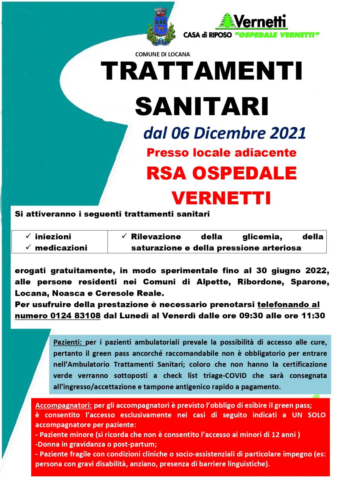 Dal 06 DICEMBRE 2021 presso locale adiacente RSA OSPEDALE VERNETTI di Locana