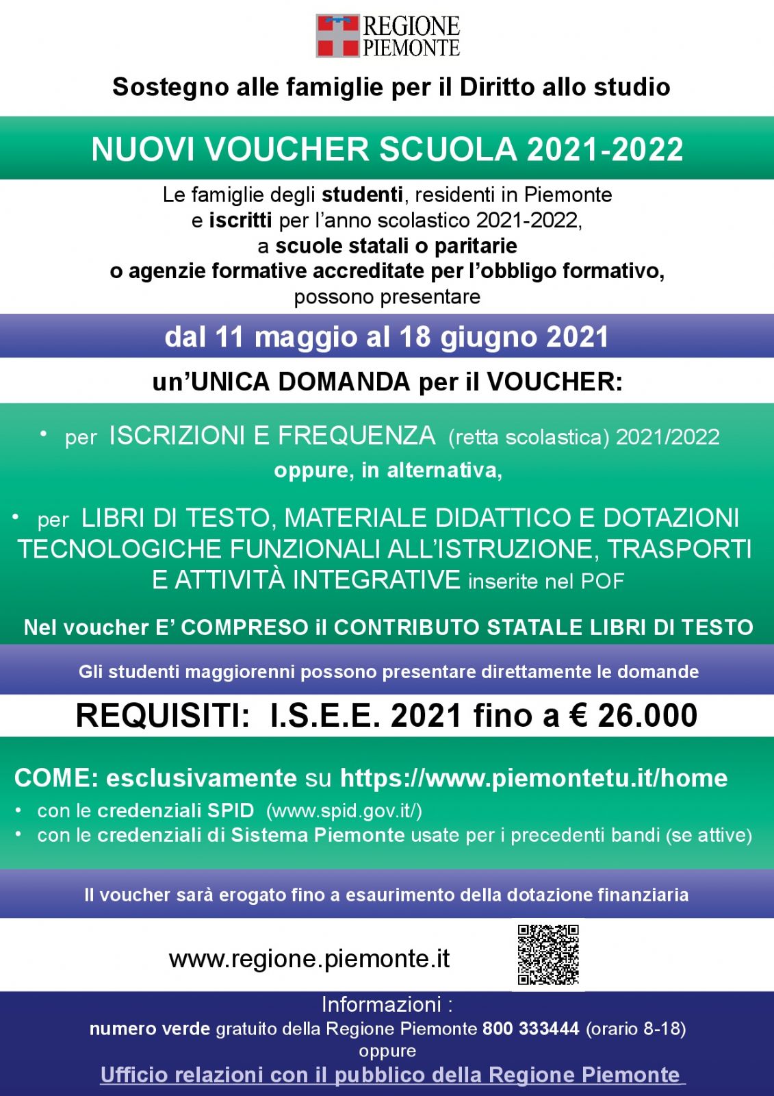 Finanziamento agli studenti residenti in Piemonte e alle famiglie per l’esercizio del diritto allo studio.
