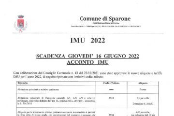 ACCONTO IMU - SCADENZA GIOVEDI' 16 GIUGNO 2022