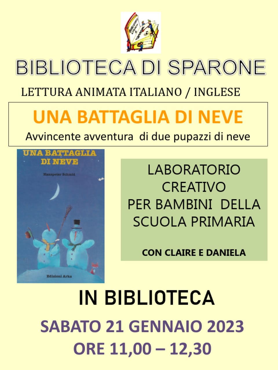 SABATO 21 gennaio 2023 dalle ore 11.00 in Biblioteca a Sparone