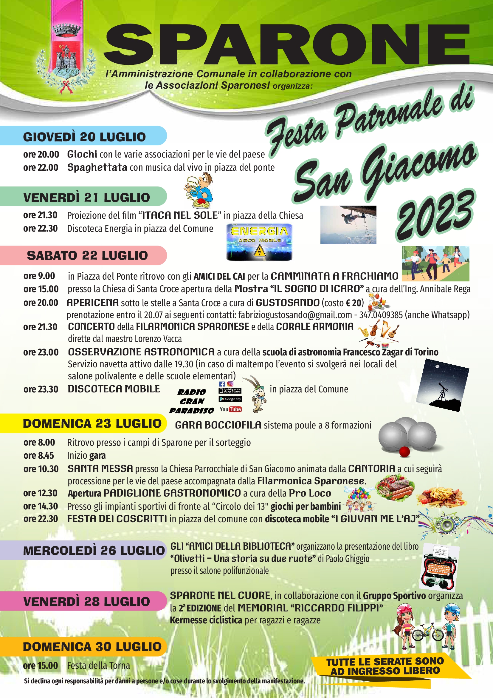 L'Amministrazione Comunale in collaborazione con le Associazioni Sparonesi organizza: