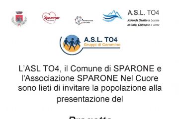 L' A.S.L. TO4, il Comune di Sparone, l'Associazione SPARONE Nel Cuore sono lieti di invitare la popolazione alla presentazione del PROGETTO GRUPPI...